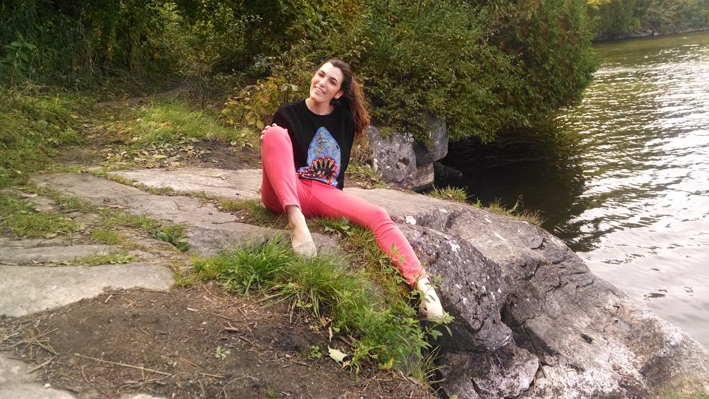 This sweater is definitely an attention grabber. It’s also not something that I would expect to find at Forever21! It’s bedazzled to an extreme with hot orange teeth that would actually hurt anyone receiving a hug. It’s a good combination of comfortable and snazzy 🙂 The red pants are pretty bold as well!