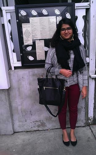 Who better to kick off the “featured friend” category than with Ms. Fashionista, Mahas?! She is someone who loves finding deals just as much as me! She is known for her amazing finds at Old Navy and H & M! She is always put together and ALWAYS adorable! These anthropology intricate earrings are the perfect compliment to a comfortable yet stylish ensemble on a chilly day!