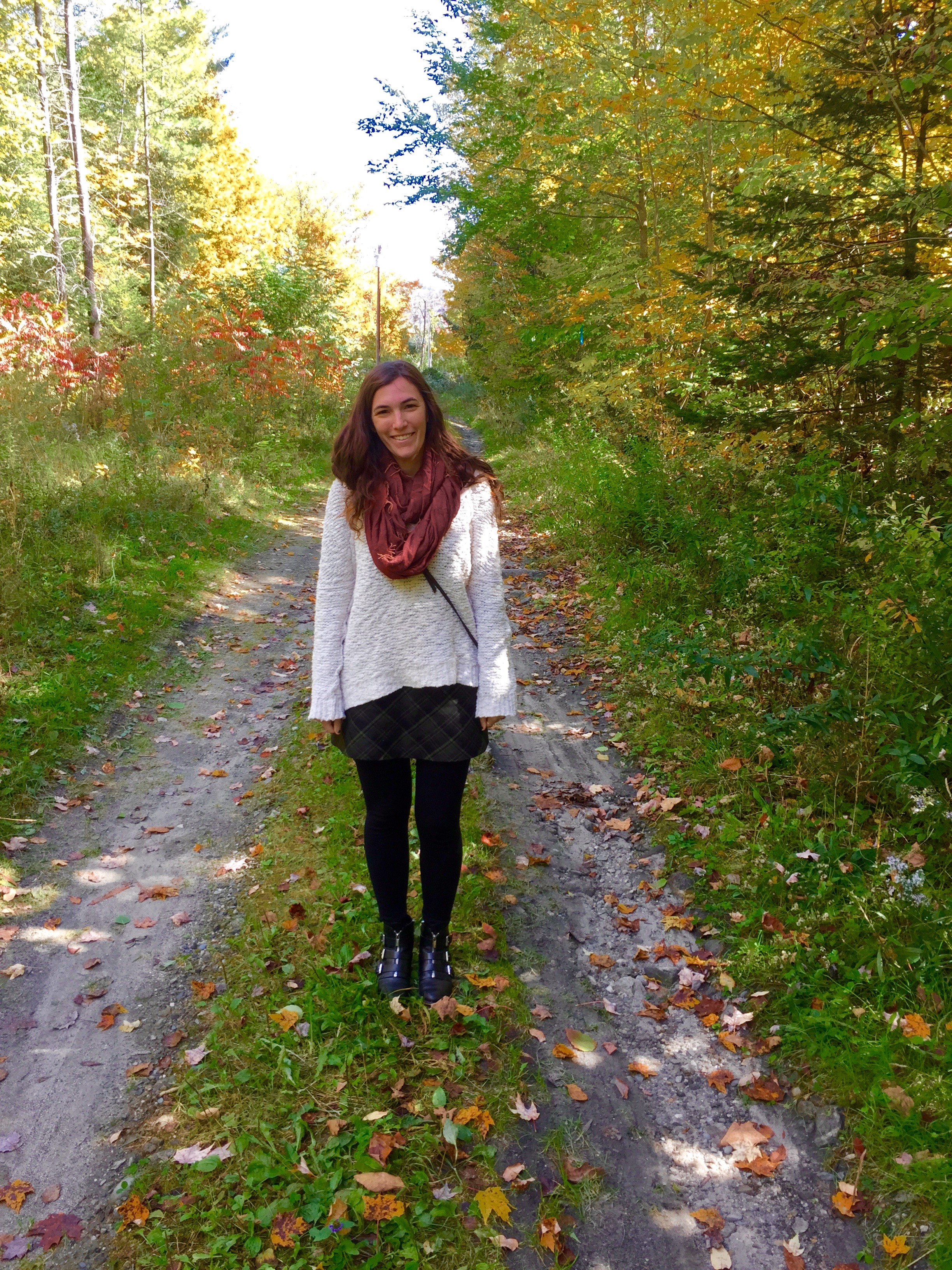 Bye summer dresses, hello cozy Fall sweaters and scarves. These are my favorite days – sun and warmth, yet cool and breezy all at the same time. This Free People sweater is definition of comfy and scored it on ebay (even though it’s a bit of a splurge). I felt like a Vermonter with my new Shuk-ed green plaid skirt. Perfect for snuggling up on a road trip to chase the foliage.