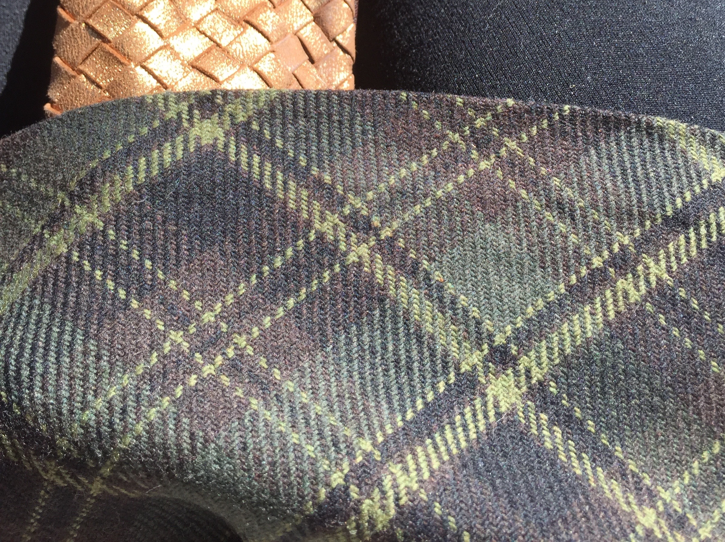Free People Songbird Sweater (ebay.com), $30.00 (orginally $98), Plaid skirt (Shalom Shuk, Burlington VT), $5.00, Maroon infinity scarf (store in NYC), $10.00, Gold bag (gifted)