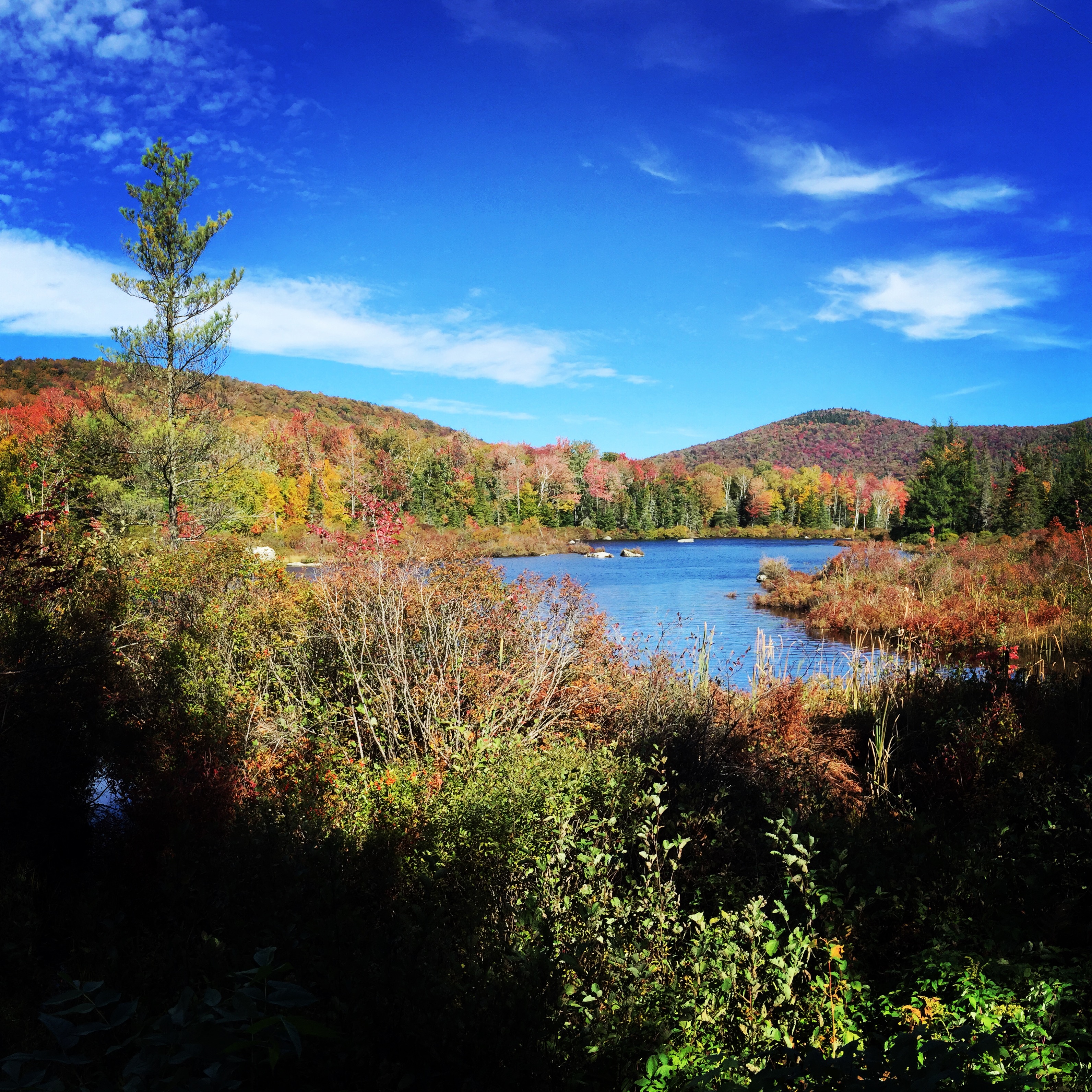 While in Marshfield, we discovered the Cross Vermont Trail which was delightfully graced with turning leaves before most places in the country! It was a magical walk through a canopy of bright colors and hidden surprises like this beautiful pond and surrounding mountains.
